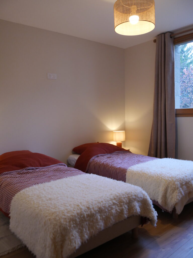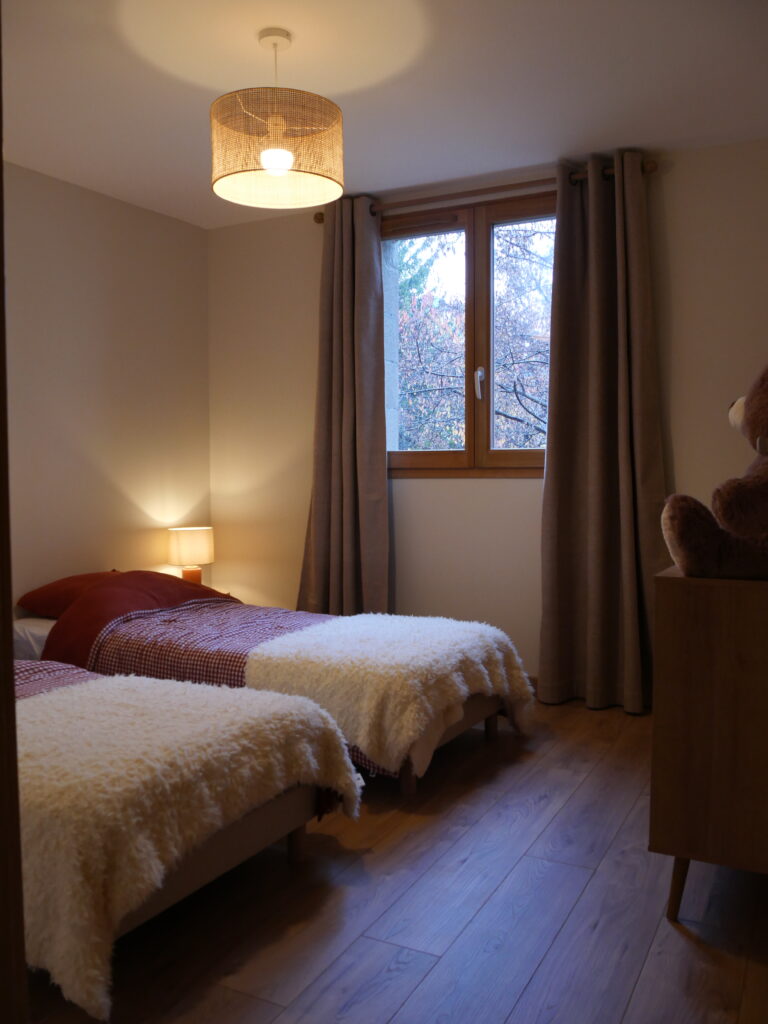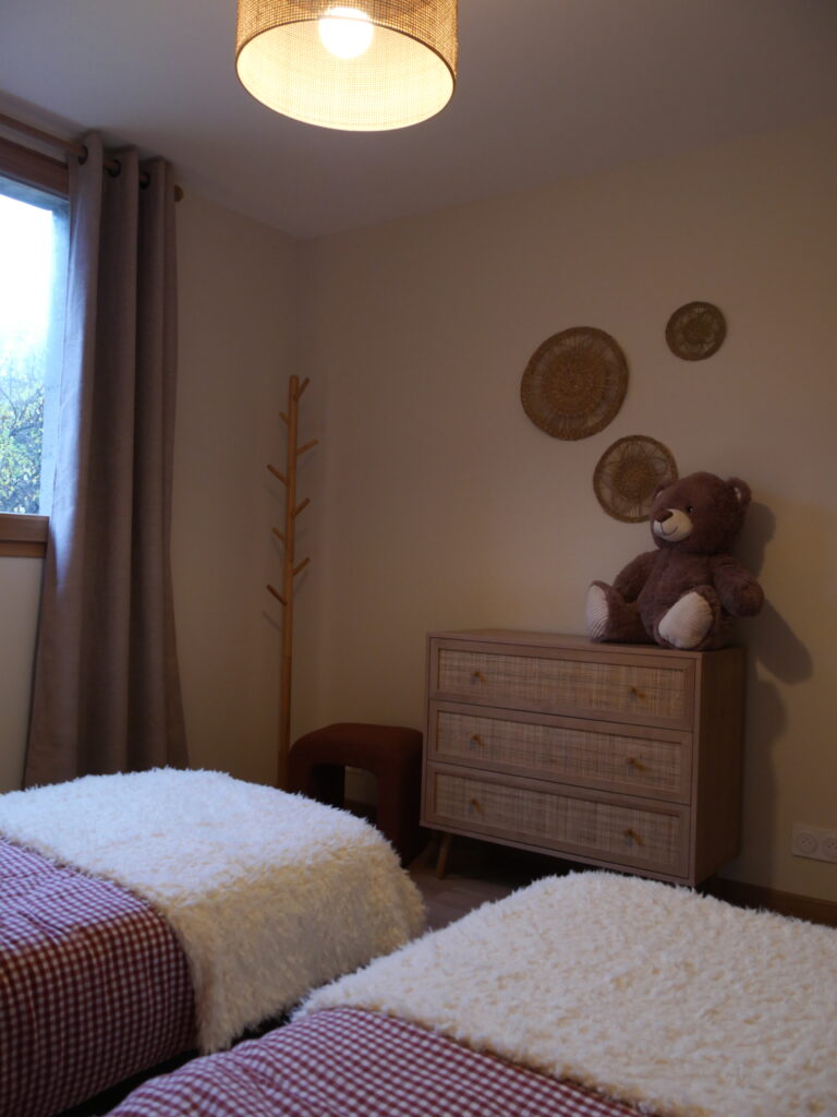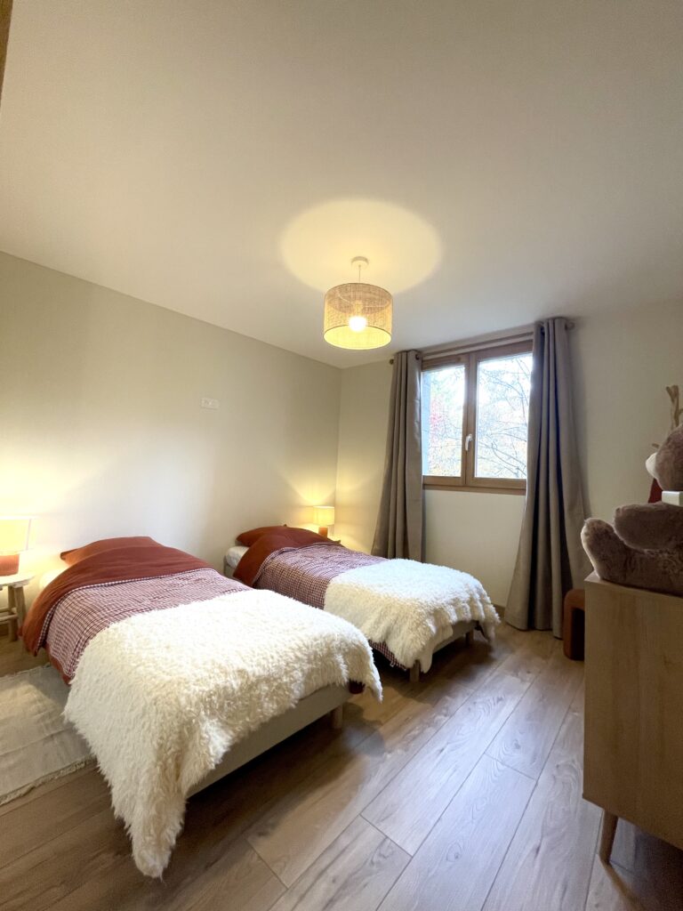 🧒 Une chambre avec deux lits individuels en 90 avec une commode , lampe de chevet